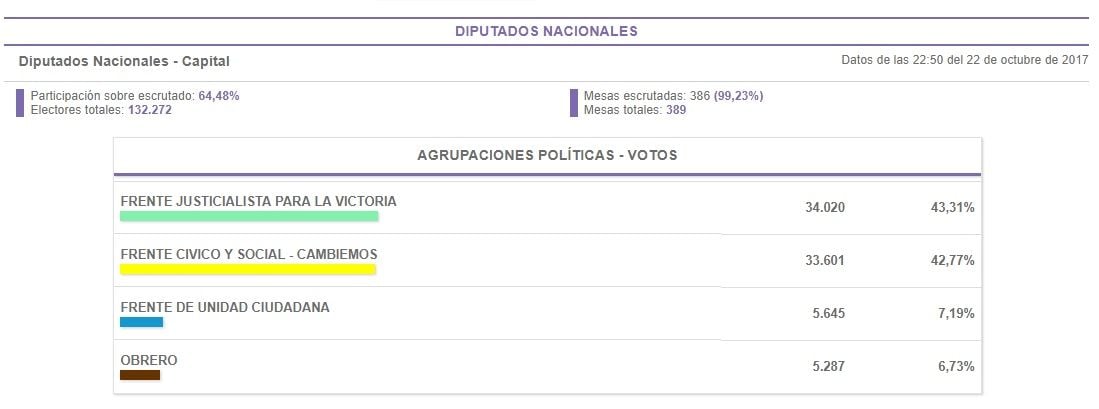 Moral (FCS-Cambiemos) se lleva 33601, una diferencia de apenas 419 votos a
