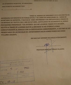 Villagra solicita en la nota se le otorgue a la brevedad el certificado de baja