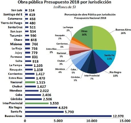 Por último, el gobierno nacional incorporó al Presupuesto una serie de obras públicas que ejecutará en las provincias por un total de $50.322 millones, destinadas principalmente a inversiones en Transporte, Vivienda, Educación y Energía.