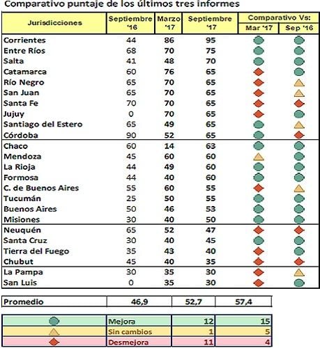 año, el promedio de las provincias sube de 52,7 a 57,4 (+4,7 p.p.). Esto