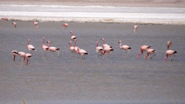 chicas (Phoenicoparrus jamesi) en "Pozo Bravo” y cuatro de flamencos andinos (Phoenicoparrus andinus) en "Ojos de