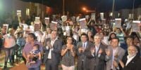 La mandataria fue recibida por los intendentes Lucas Carrazana de Saujil y Francisco Gordillo de Poman, y llegó acompañada por el Presidente de la Cámara de Senadores, Jorge Solá Jais, el Vicepresidente de la Cámara de Diputados, Armando López Rodríguez, el administrador del IPV, Dante López Rodríguez, el secretario de la Vivienda, Fidel Saenz, y el senador departamental Héctor Fernández.