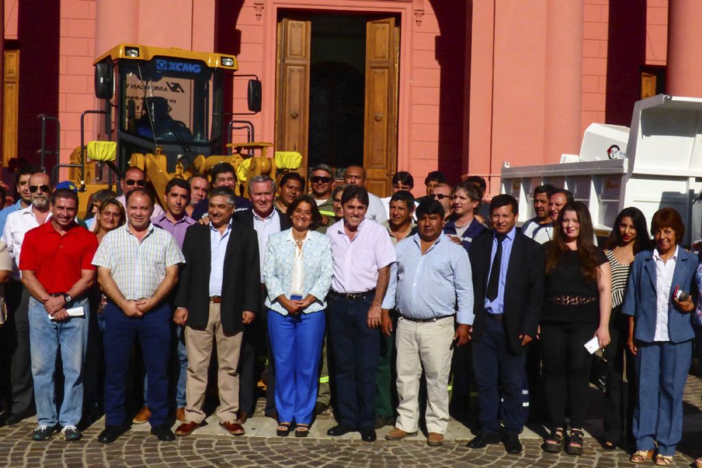 el camión, la motoniveladora y el cargador que serán destinados al campamento