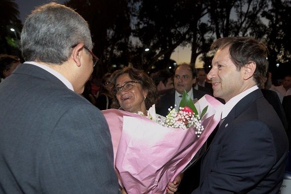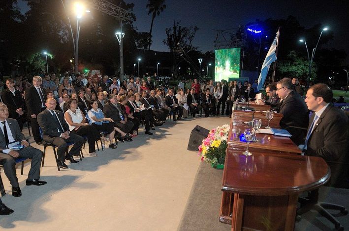 La Gobernadora Lucía Corpacci y el ministro de Gobierno y Justicia, Gustavo Saadi, acompañaron esta tarde al intendente Raúl Jalil al acto de apertura de sesiones del Concejo Deliberante de la Capital, en un acto que tuvo como inusual escenario el remodelado paseo de la Alameda.