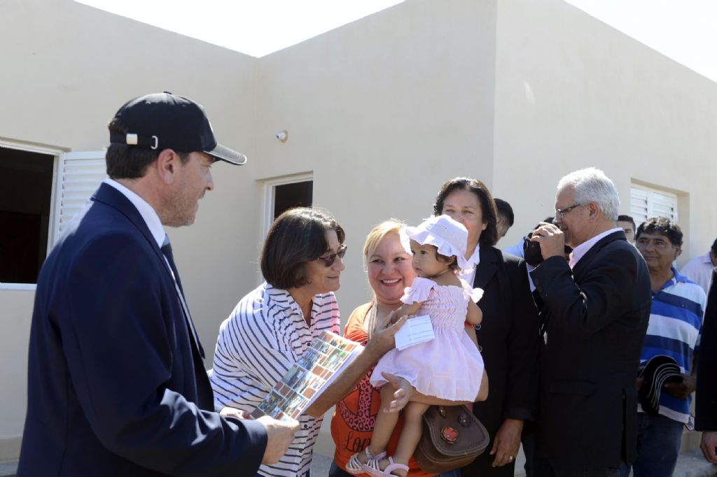 Durante el acto de entrega, el secretario de la Vivienda