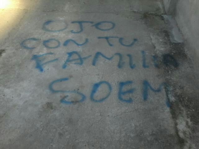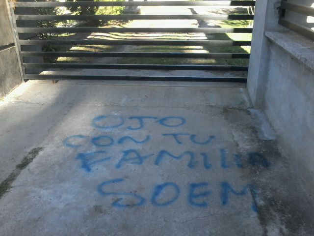 También, en el piso de la vivienda del jefe comunal, escribieron lo siguiente: "ojo con familia SOEM".