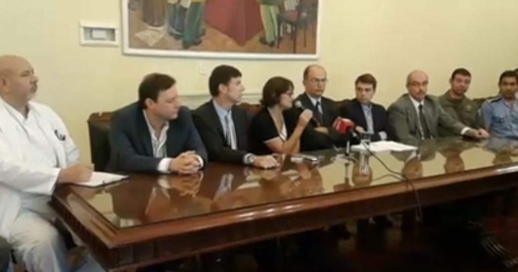 funcionarios de su gabinete que conforman el COE, una conferencia de prensa