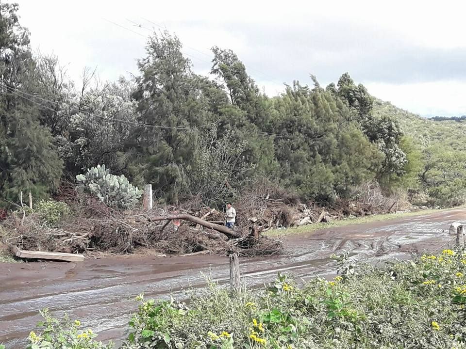 caída de postes y creciente.