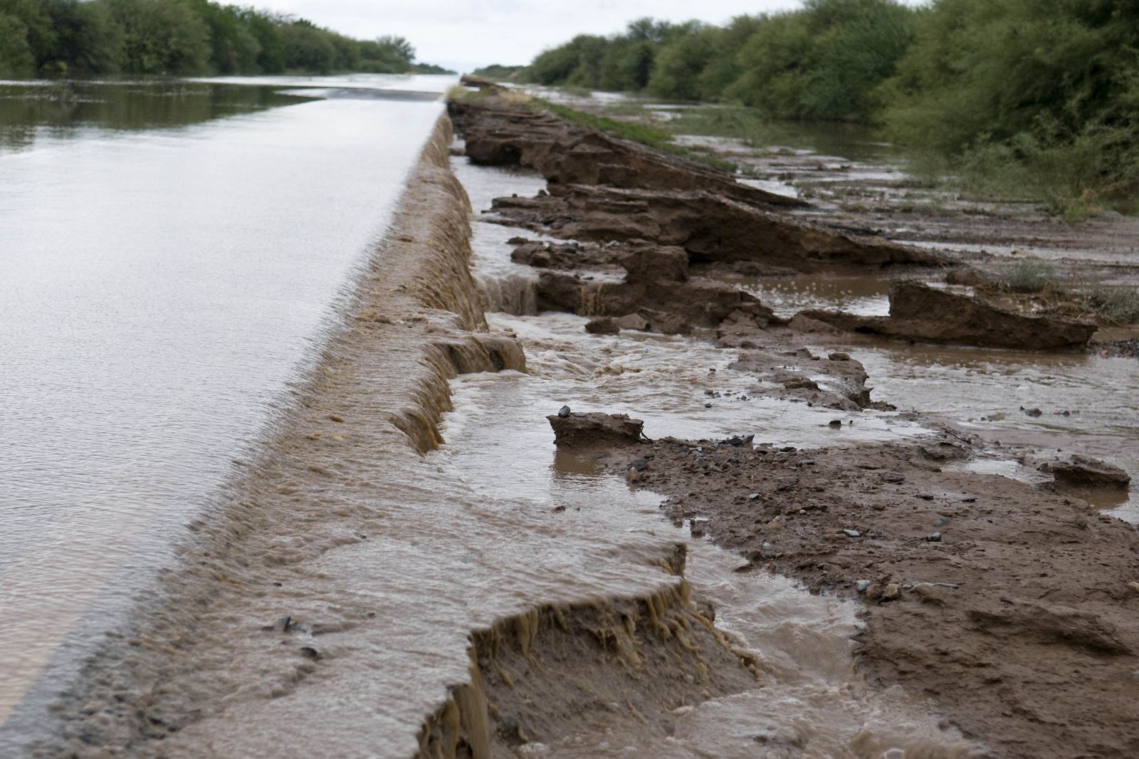 En la Ruta 60 el rió destruyo la banquina y se hace casi