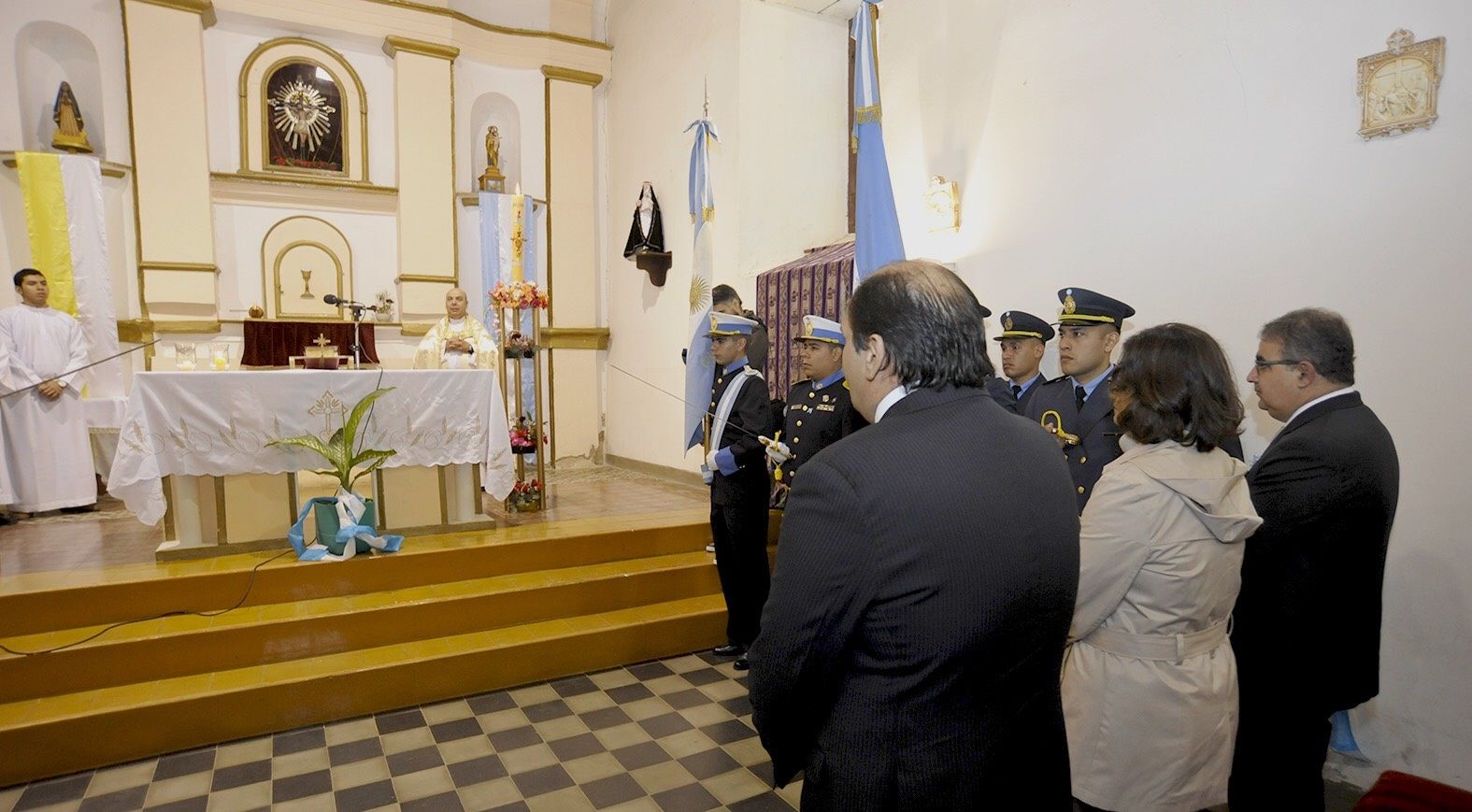 comenzar la celebración religiosa, se realizaron el tradicional izamiento de la
