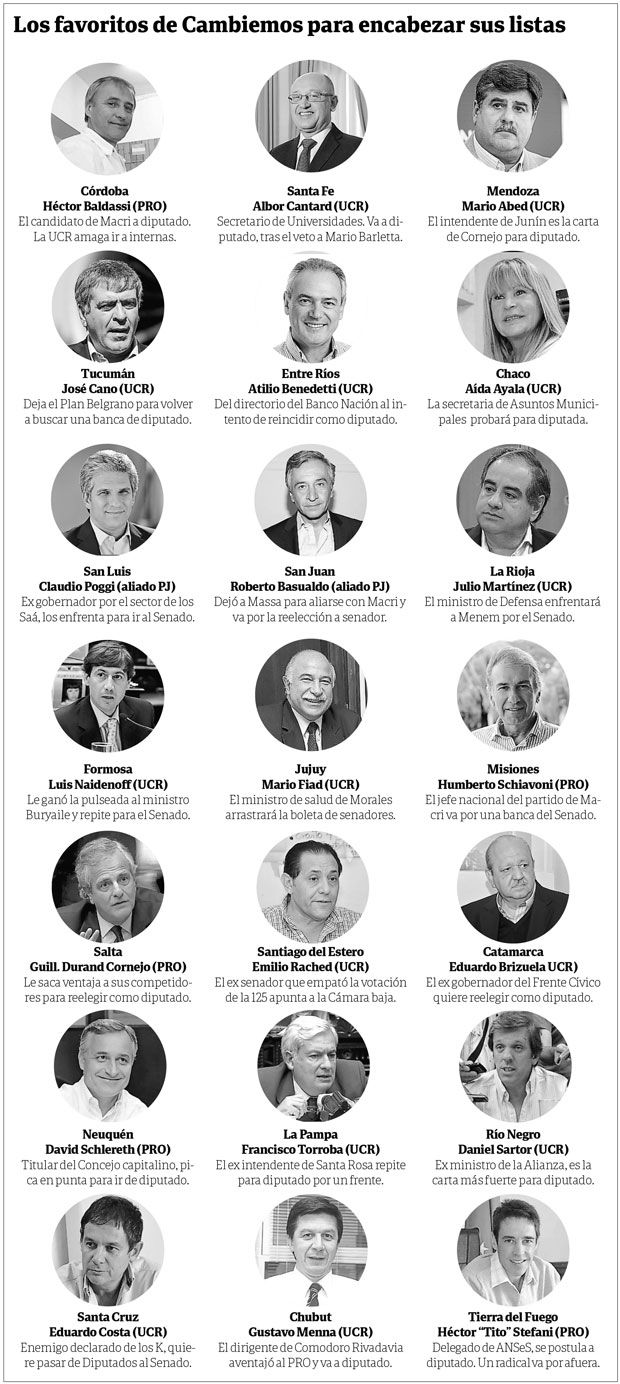 los candidatos que encabezarán las listas legislativas de Cambiemos en 21 de