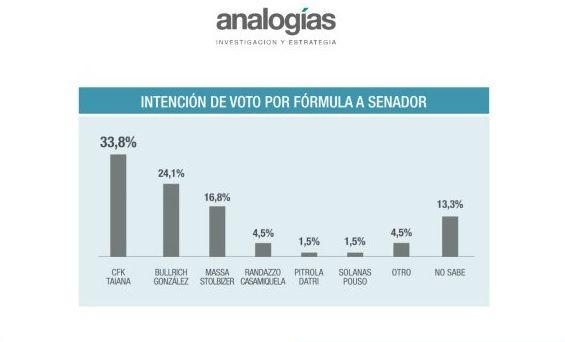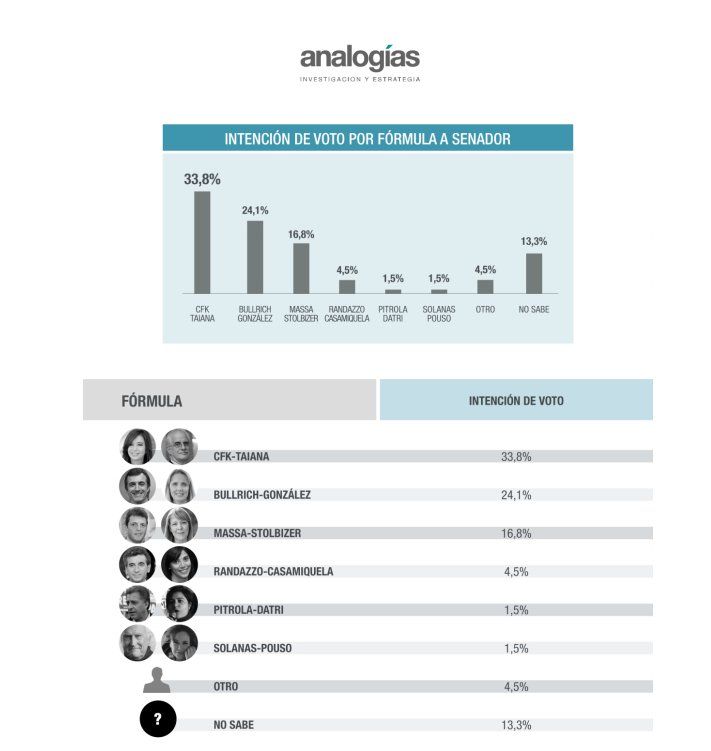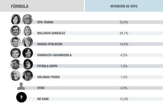 la dupla Esteban Bullrich-Gladys González que alcanza 24,1%. Y Sergio Massa con