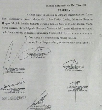 Durante la mañana de hoy también tomaron conocimiento las Autoridades del Concejo Deliberante, por lo tanto el Presidente del Cuerpo Ariel Espinoza acompañado por los ediles Alberto Oyola y Lucio Barrionuevo se mostraron satisfechos con la medida judicial que además ratifica la "autonomía Institucional del Concejo Deliberante de Recreo".