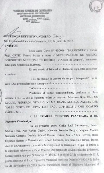 "Esta es una sentencia definitiva número 10, de fecha 22 de junio de 2017 de la Corte de Justicia de la provincia de Catamarca", aseguró Contreras.