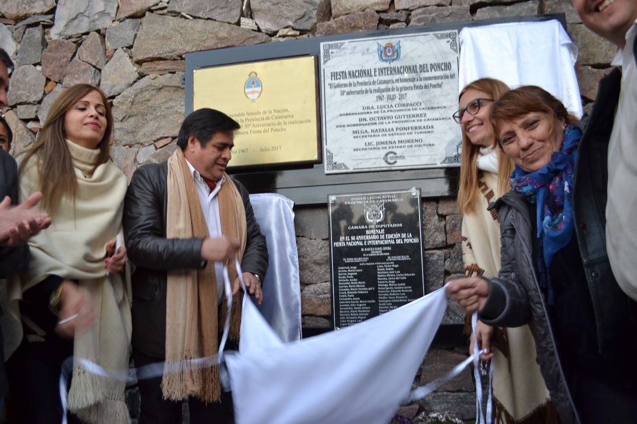La gobernadora Lucía Corpacci, autoridades de la Cámara de Diputados, de la Secretaría de Turismo y Cultura, dejaron plasmada una placa en homenaje a la 50 edición de Fiesta Nacional e Internacional del Poncho.
