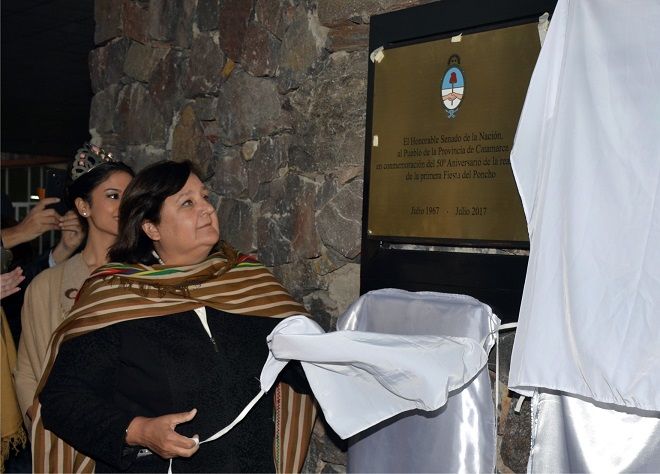 Con el descubrimiento de una placa por parte de la senadora, que dice lo siguiente, "El Honorable Senado de la Nación al Pueblo de la Provincia de Catamarca en Conmemoración del 50 Aniversario de la realización de la primera Fiesta del Poncho, Julio 1967 – Julio 2017”, la cámara legislativa nacional marca su presencia en el ingreso al Predio Ferial donde se desarrolla la "Fiesta de Invierno más Grande de la Argentina”.