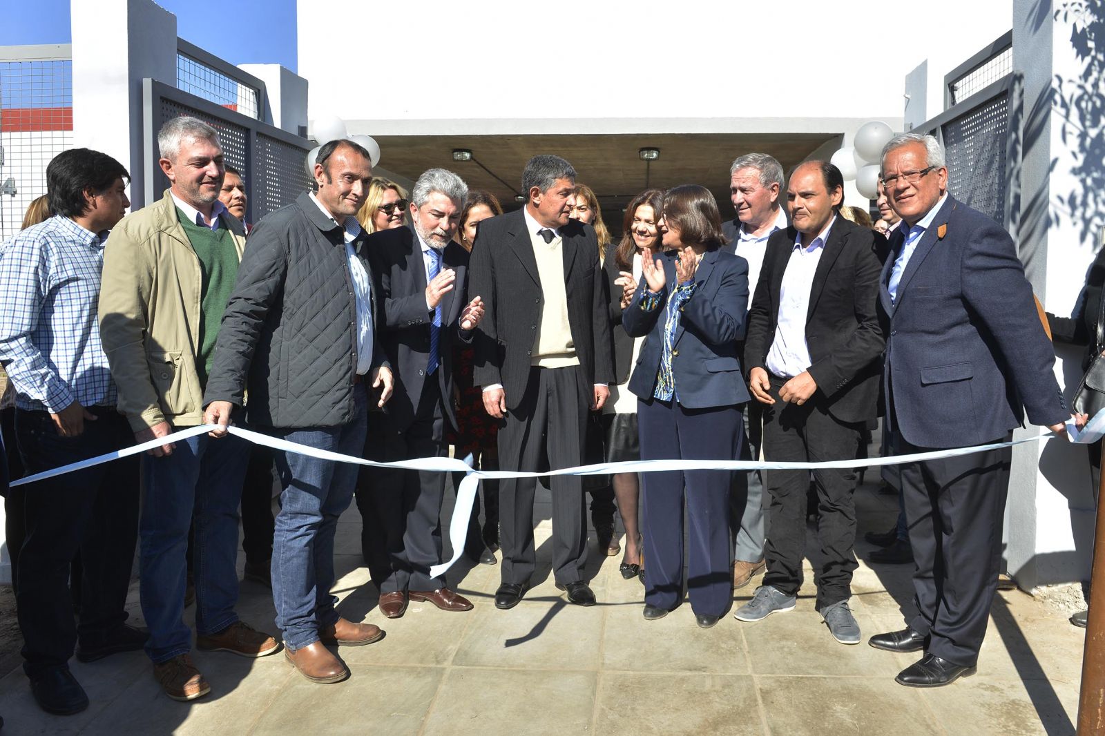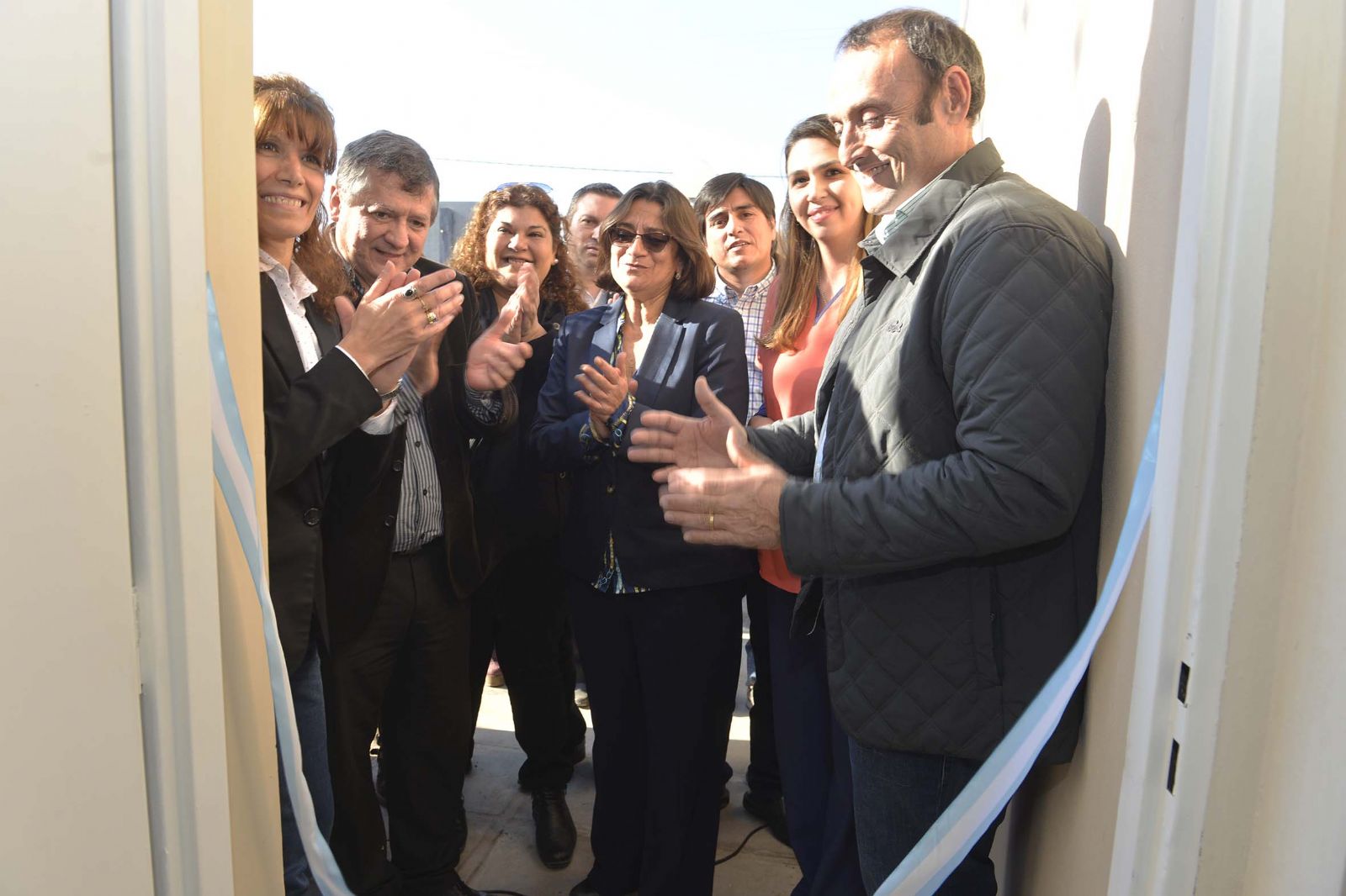 La Gobernadora Lucía Corpacci inauguró esta mañana el flamante edificio de la Escuela de Formación Laboral para Adultos N°34 en la zona oeste de la Capital, conocida como "La Quebrada”. Antes, en Valle Viejo, había dejado inaugurada una Posta Sanitaria en la localidad de Las Tejas y había recorrido el avance de obras de las 24 viviendas que se construyen para los damnificados por las últimas inundaciones en El Portezuelo.
