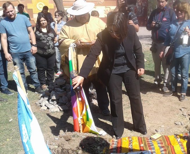El emotivo y singular momento fue conducido por el artista plástico Raúl Guzmán, en un espacio bautizado como "Plaza de la Pachamama”, en el acceso al predio, y ante las máximas autoridades públicas como la primera mandataria, el intendente de la Capital, Raúl Jalil; ministros del Poder Ejecutivo, senadores y diputados provinciales, entre otros funcionarios.