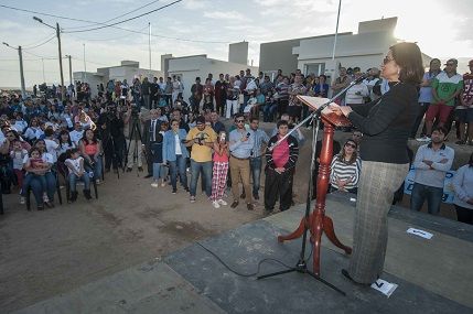 La jefa de Estado recordó que "las otras viviendas las entregamos con las calles adoquinadas", porque ese trabajo no se hizo todavía en el nuevo sector, y explicó que "estábamos en una disyuntiva: hacerlos que sigan esperando o entregar las viviendas", y se priorizó la entrega por las necesidades de cada familia.