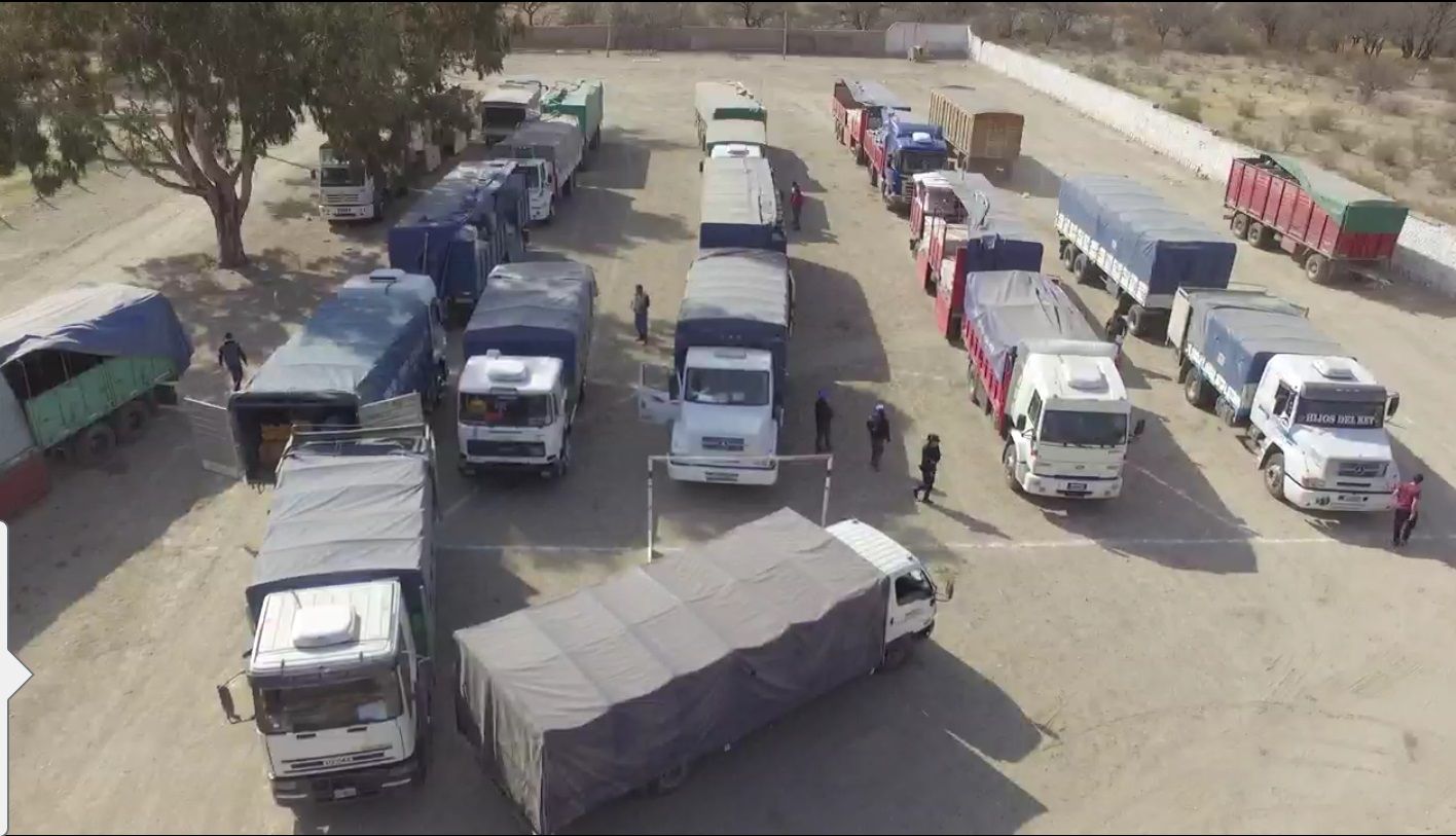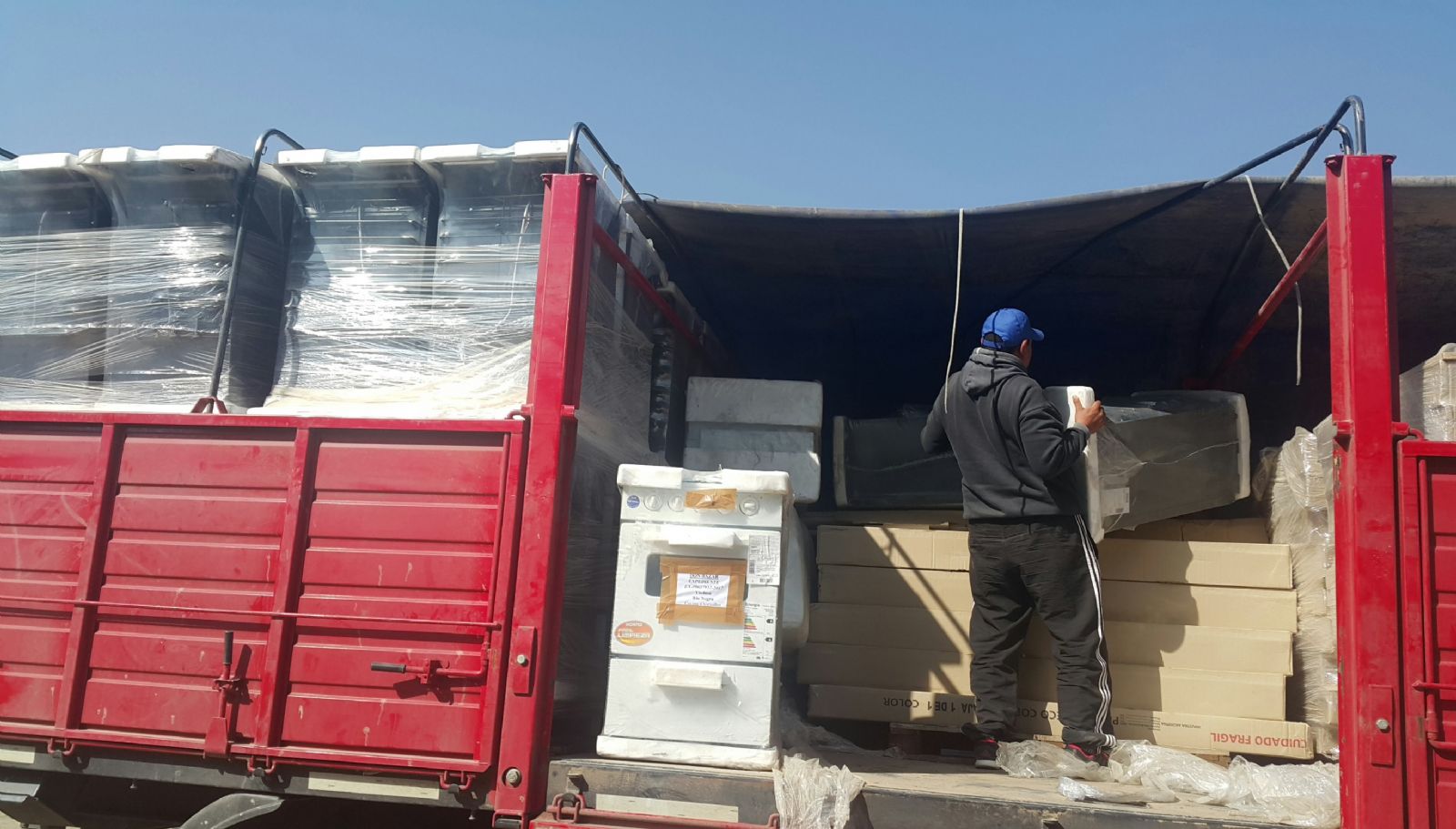 los 11 camiones que contienen desde heladeras, cocinas, camas, colchones,