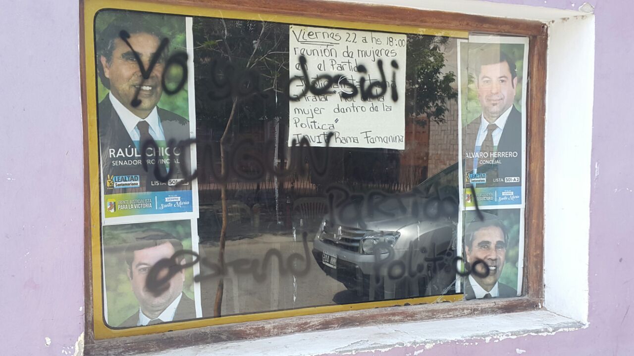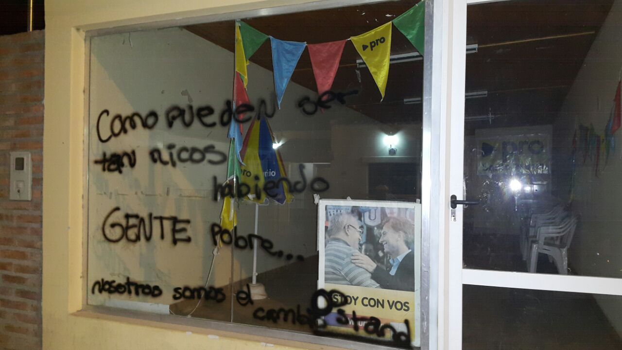 Una de las pintadas la hicieron en una de las sedes que tiene