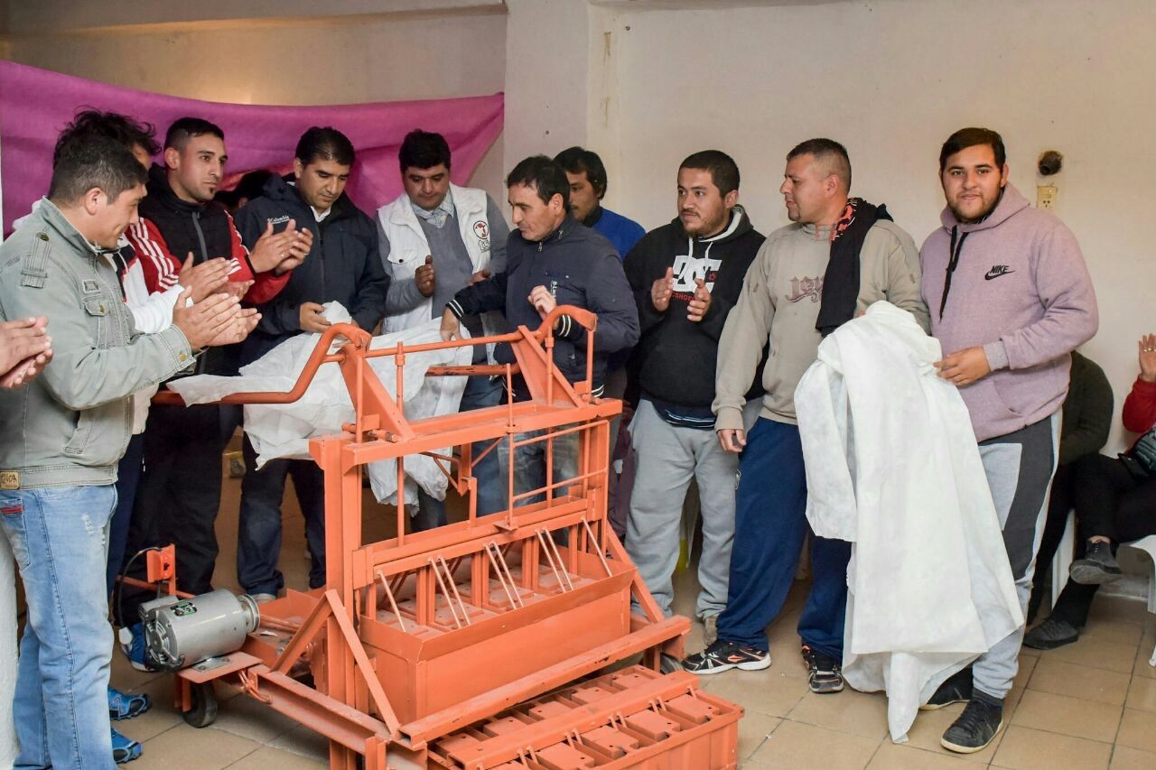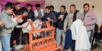 la entrega de una máquina industrial para el corte de blocks para construcción,