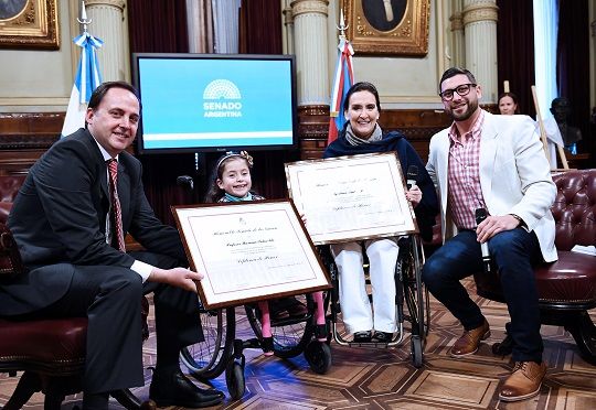 El acto, realizado en el Senado de la Nación, contó con la presencia de la Vicepresidenta Gabriela Michetti, quien intercambió una distendida y afectuosa charla con Agostina, agradeció al Senador Dalmacio Mera haber generado esta iniciativa y la oportunidad de poder conocer a Agostina y al "profe” Mariano.