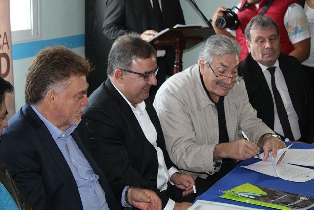 Participaron de la firma del Convenio, el Intendente capitalino Raúl Jalil, el Delegado Regional de la CGT Catamarca, Leonardo Burgos; secretarios municipales; directores municipales; autoridades del Banco Nación; y el Secretario de Vivienda y Hábitat de la Nación, Domingo Amaya.