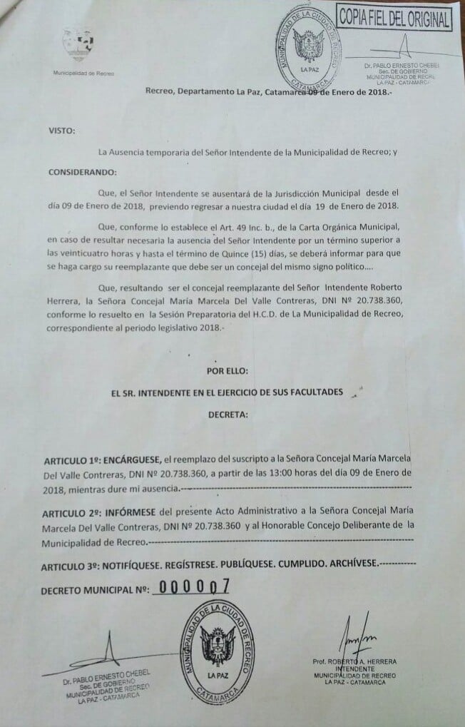 Si bien no informaron oficialmente de las vacaciones del Intendente Roberto Herrera, pudimos confirmar que se extenderán hasta el día 19 de enero, según Decreto N°0007/2018 del Poder Ejecutivo de la Municipalidad de Recreo.