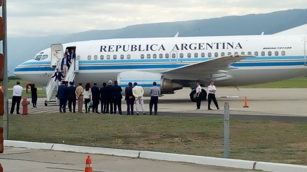 Macri arribó en el avión Presidencial, acompañado por el ministro del Interior, Rogelio Frigerio, entre otras autoridades integrantes del Gabinete Nacional.