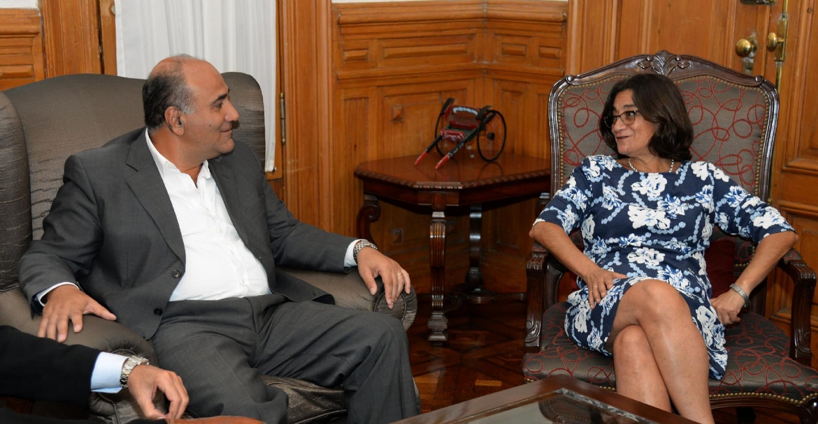 Del encuentro protocolar participaron además: el presidente subrogante de la Legislatura, a cargo de la vicegobernación, Fernando Juri; el diputado nacional, Pablo Yedlin; y el ministro de Gobierno y Justicia de la provincia vecina, Marcelo Rivera.