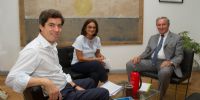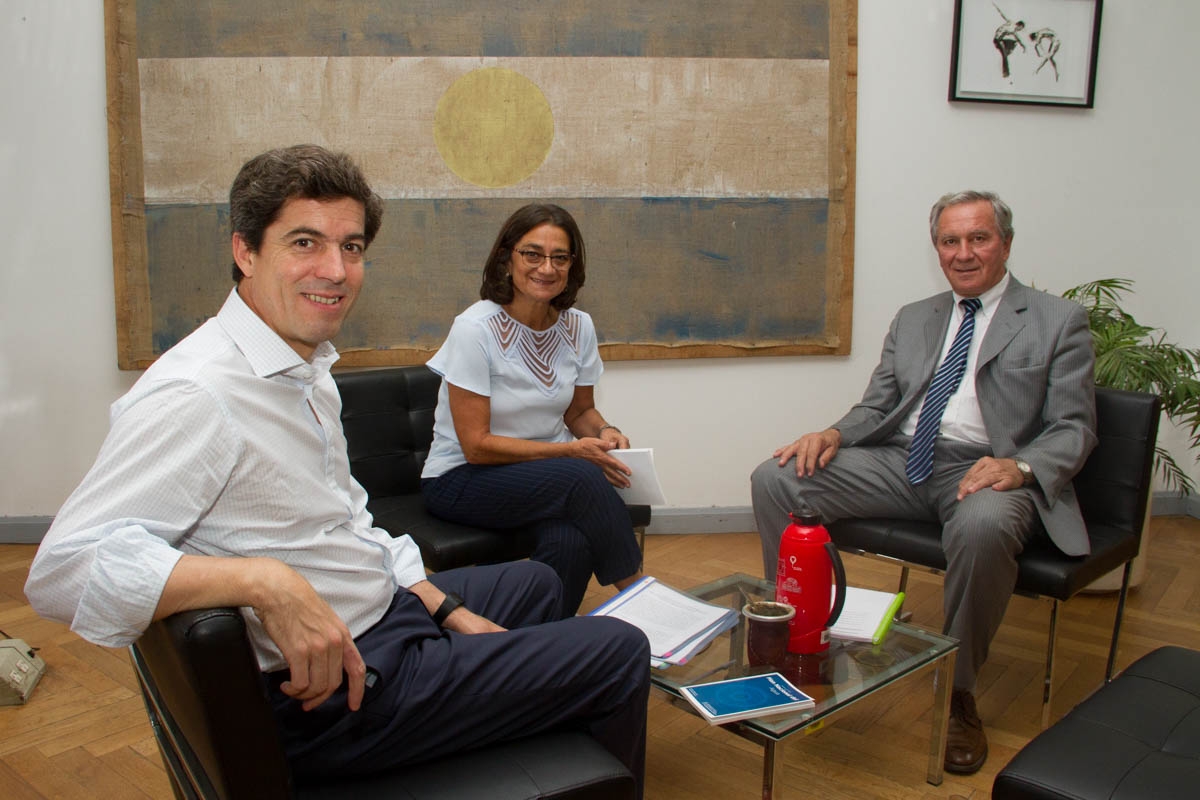 Junto al ministro de Obras Públicas, Rubén Dusso, la mandataria cerró los acuerdos con Pablo Bereciartúa, subsecretario de Recursos Hídricos de la Nación.