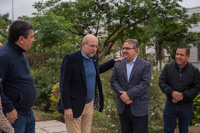 El intendente de SFVC, Raúl Jalil, y el rector de la Universidad Nacional de Catamarca, Flavio Fama, supervisaron los últimos trabajos del proyecto de integración de la plaza Virgen del Valle con la casa de altos estudios.