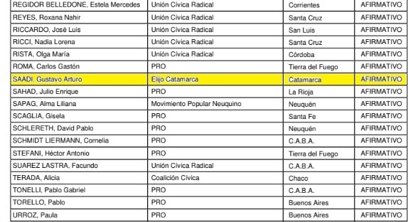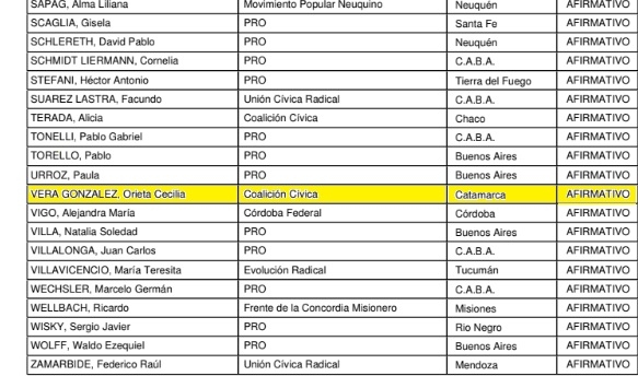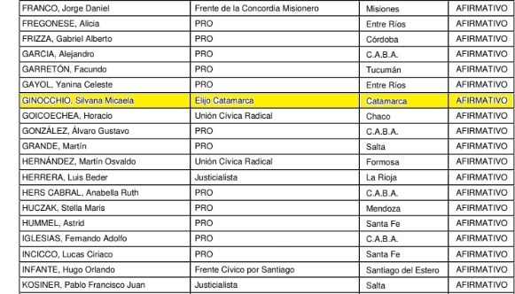 En el caso de los legisladores catamarqueños, todos –salvo Verónica Mercado que votó en contra- apoyaron el proyecto del gobierno nacional. Los votos a favor a continuación:
