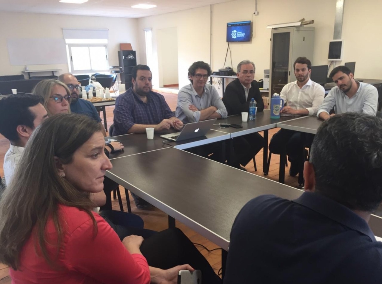 El secretario general de la Gobernación, Edgardo Macedo; la subsecretaria de Planificación, Natalia Dusso; el director de Modernización, Franco Zurita Perea; y el presidente del Cluster Tecnológico, Carlos Acosta Parra oficiaron de anfitriones en este encuentro que se concretó en el cluster, y que tuvo por objetivo dar a conocer el trabajo que se viene desarrollando para formar recursos humanos en el campo tecnológico, particularmente en desarrollo de software.