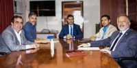 El presidente provisorio de la Cámara de Senadores Jorge Solá Jais acompañado por el secretario administrativo del cuerpo Diego Véliz, se reunieron esta mañana con el ministro de Hacienda y Finanzas de la provincia, Sebastián Véliz, con el propósito de tratar sobre los lineamientos para el Presupuesto 2019, tanto para el Poder Ejecutivo como Legislativo.