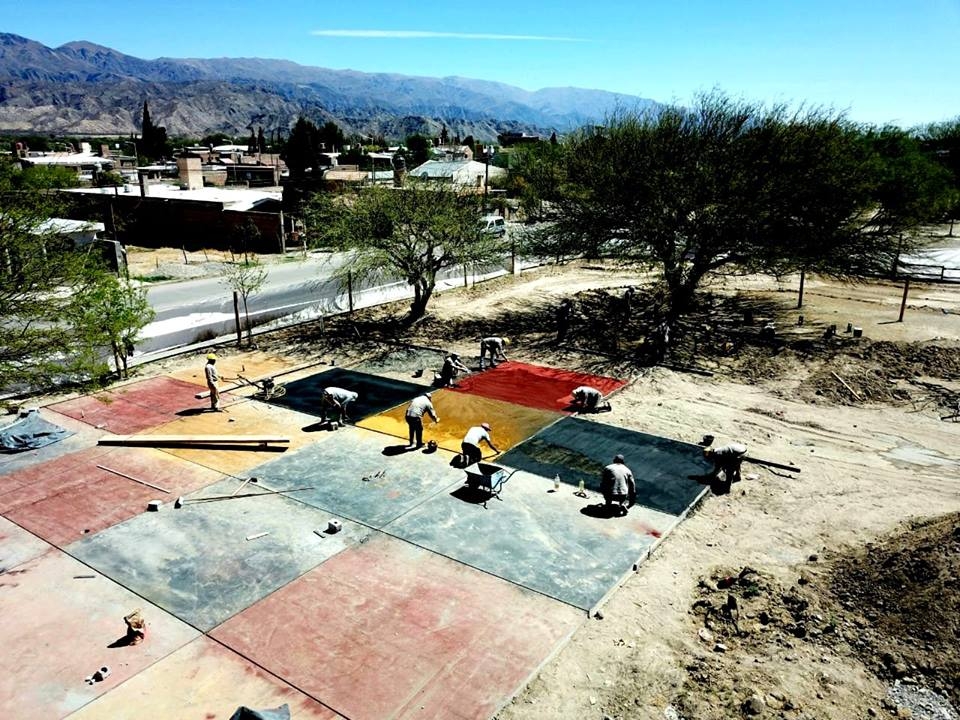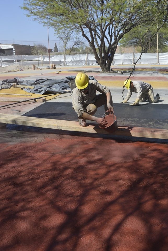 En lo que respecta al sistema de riego de la misma, está prácticamente terminado, mientras que la instalación eléctrica (subterránea), avanza a medida que se continúa con el piso y caminerías.