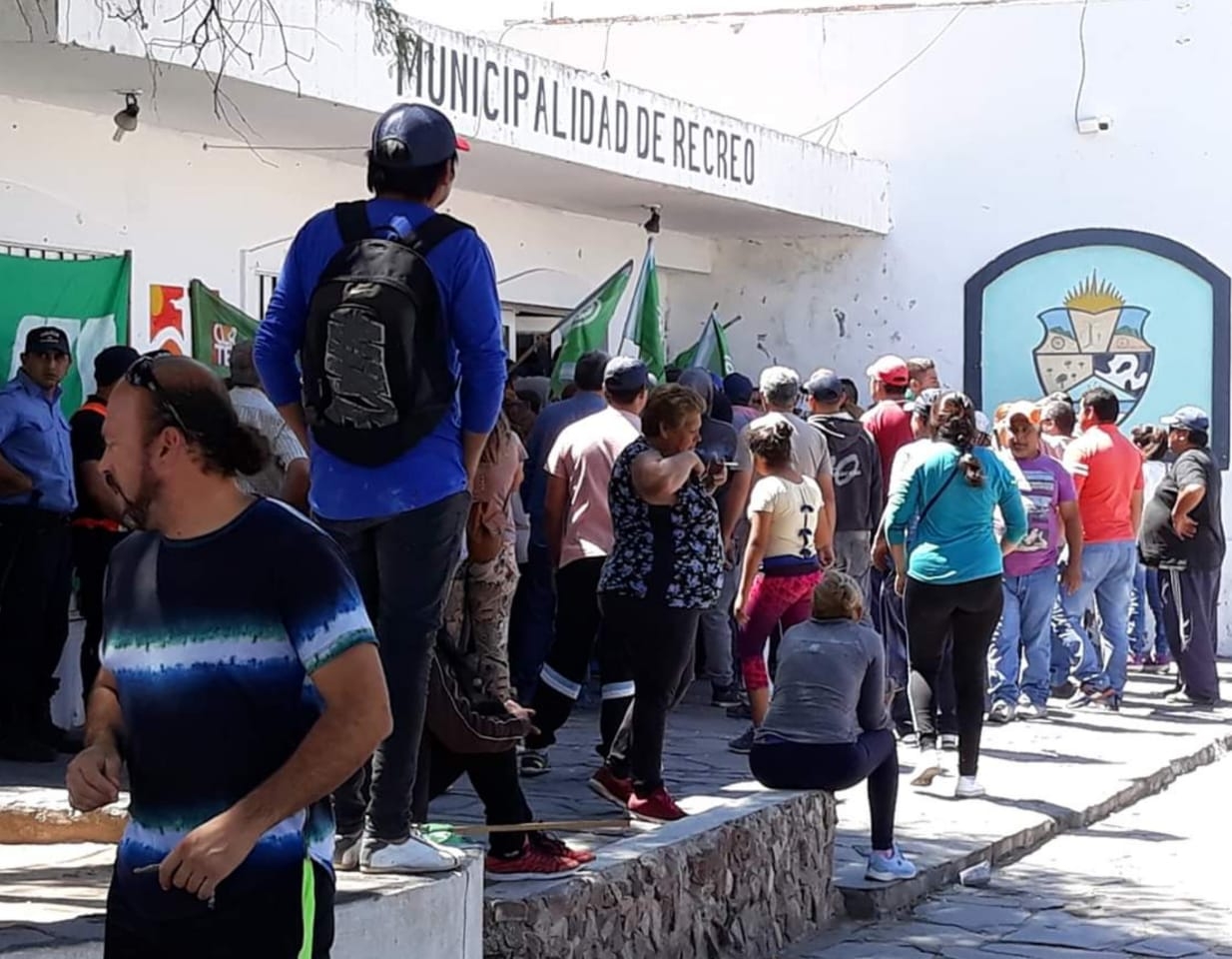 "Cansados de esperar y del manoseo de los segundones del intendente Herrera", manifestaron los municipales en la jornada de este jueves, donde después de las 14 horas se vivieron escenas de tensión en la Municipalidad de Recreo.