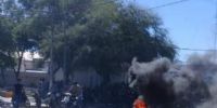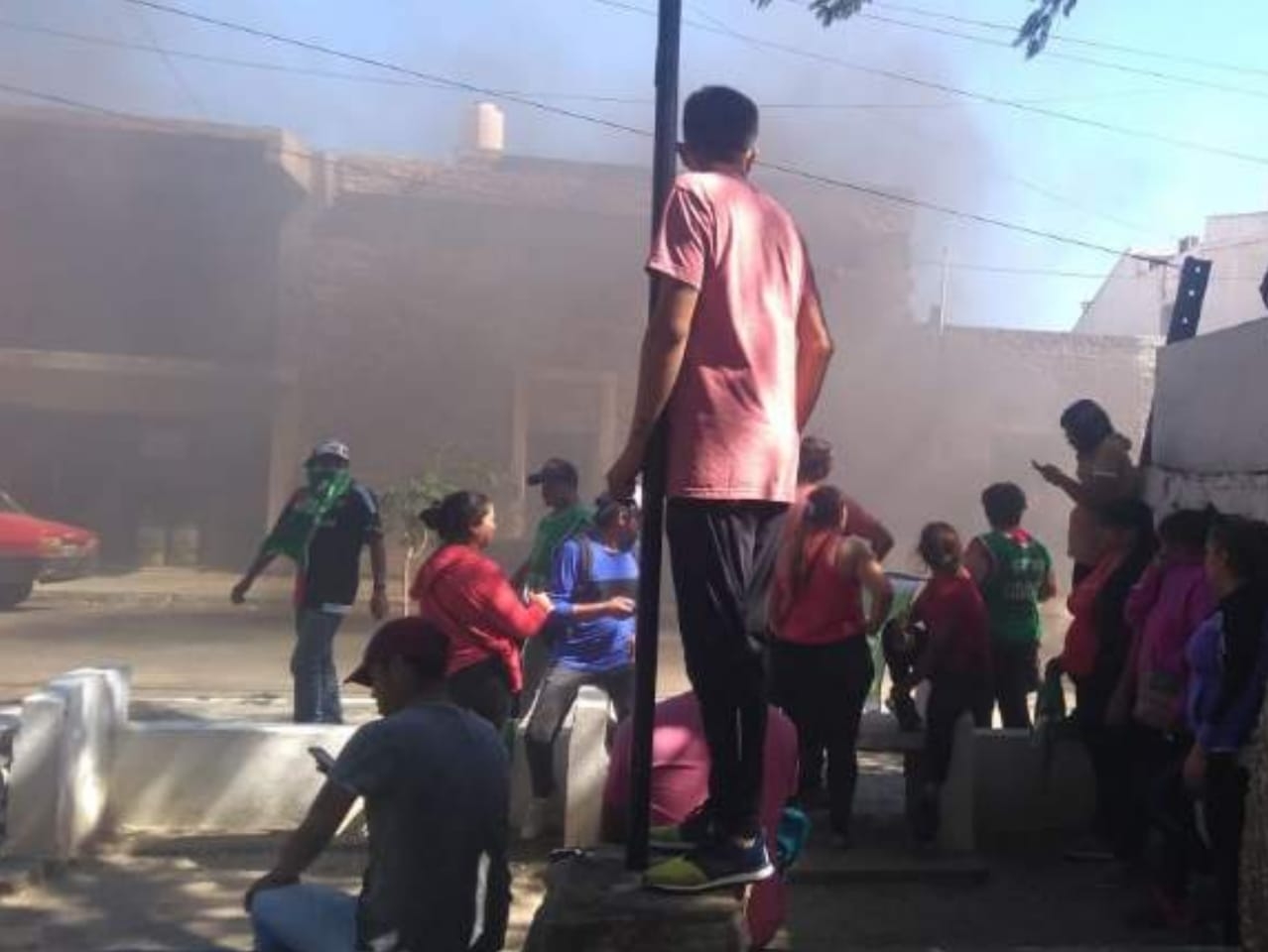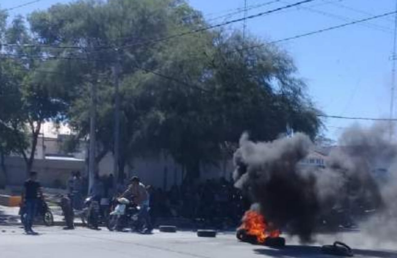 Los municipales, desde las 6 horas, tras hacer cola en el cajero automático para cobrar sus "magros sueldos", decidieron manifestarse frente a Obras Públicas Municipal, con quema de gomas, evitando el movimiento el lugar.
