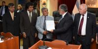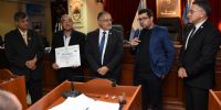 Presentes en el recinto sus hijos Héctor, Fabiana y Mirtha Maidana recibieron copia del instrumento legislativo al tiempo que agradecieron este reconocimiento dispuesto por iniciativa del senador Vera y el acompañamiento de los Senadores.