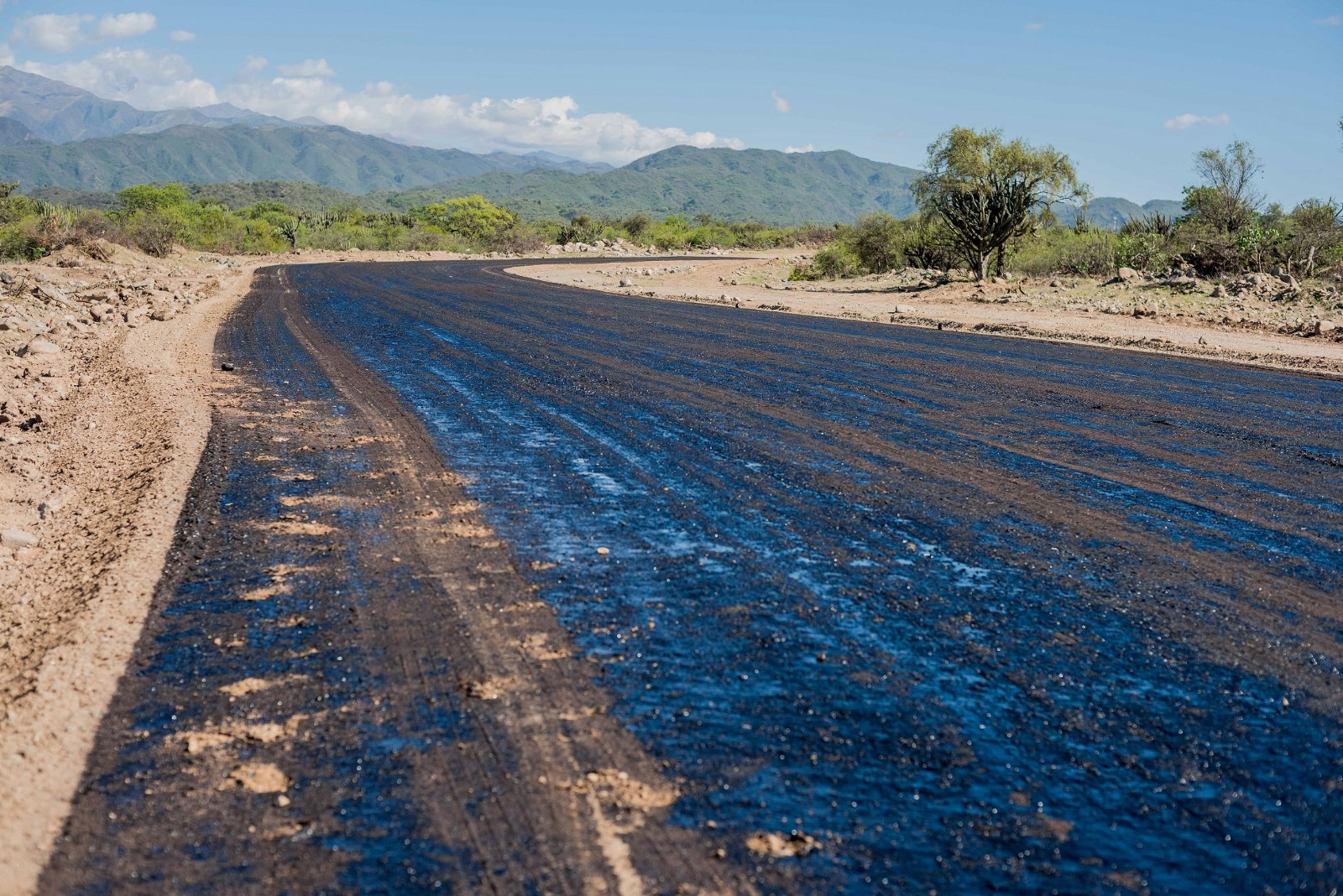 Días atrás, iniciaron las tareas de imprimación de alquitrán en toda la extensión del recorrido que va desde avenida Del Pino hasta la rotonda de Valle Chico en avenida Sal Gema.