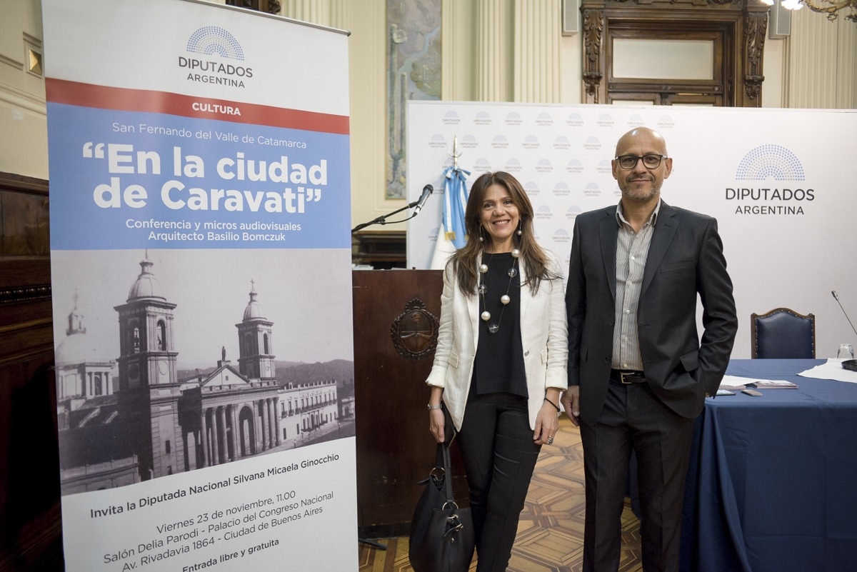 La diputada Ginocchio manifestó en la apertura su agradecimiento a la Dirección del Cultura del Congreso y al arquitecto Basilio Bomczuk por el entusiasmo y disposición a realizar la conferencia, ya que la misma permitiría "conocer aspectos para muchos desconocidos de la obra de Luis Caravati -dijo-. Catamarca puede ser considerada ciudad de un solo arquitecto, como lo afirma Alberto Nicolini, o de autor, al decir de Basilio" y remarcó la importancia de trabajar en difundir y dar conocer el valioso patrimonio cultural arquitectónico histórico de la ciudad de San Fernando del Valle de Catamarca, “de allí la importancia de apoyar toda incitativa en ese camino e involucrarnos”.