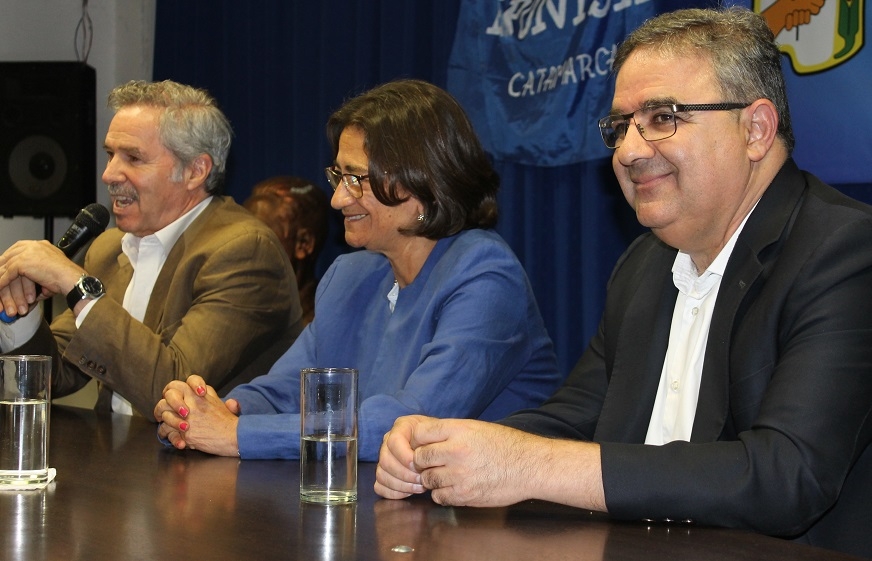 Antes que Solá, para darle la bienvenida, habló la gobernadora Corpacci, también presidente del Consejo Provincial del PJ, quien felicitó al visitante “por este esfuerzo que estás haciendo, trabajando fuertemente en procura de unir al peronismo”.