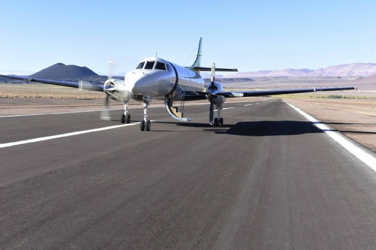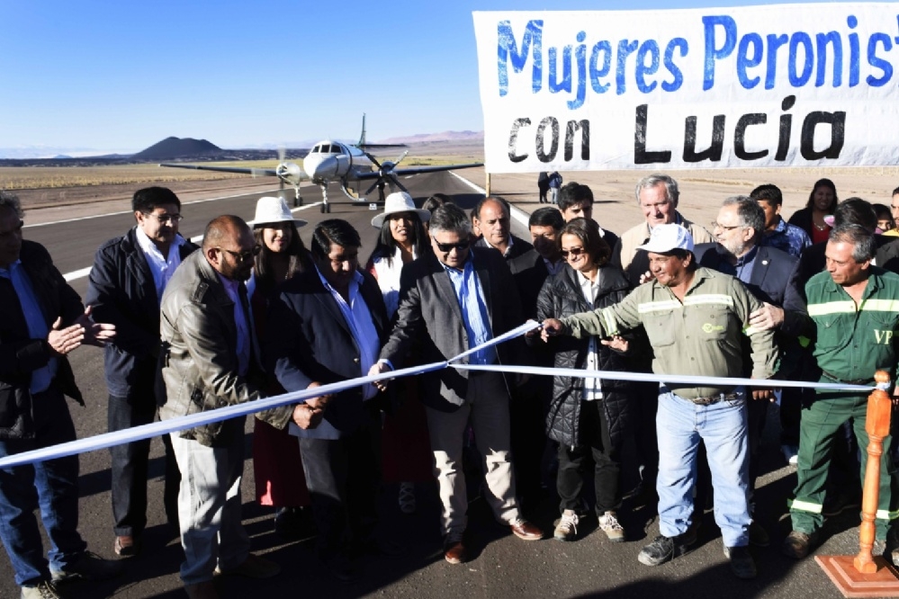 La mandataria arribó a la Puna catamarqueña durante la mañana y aterrizó en el avión de la Provincia, dejando así inaugurada la pista con este primer vuelo oficial.
