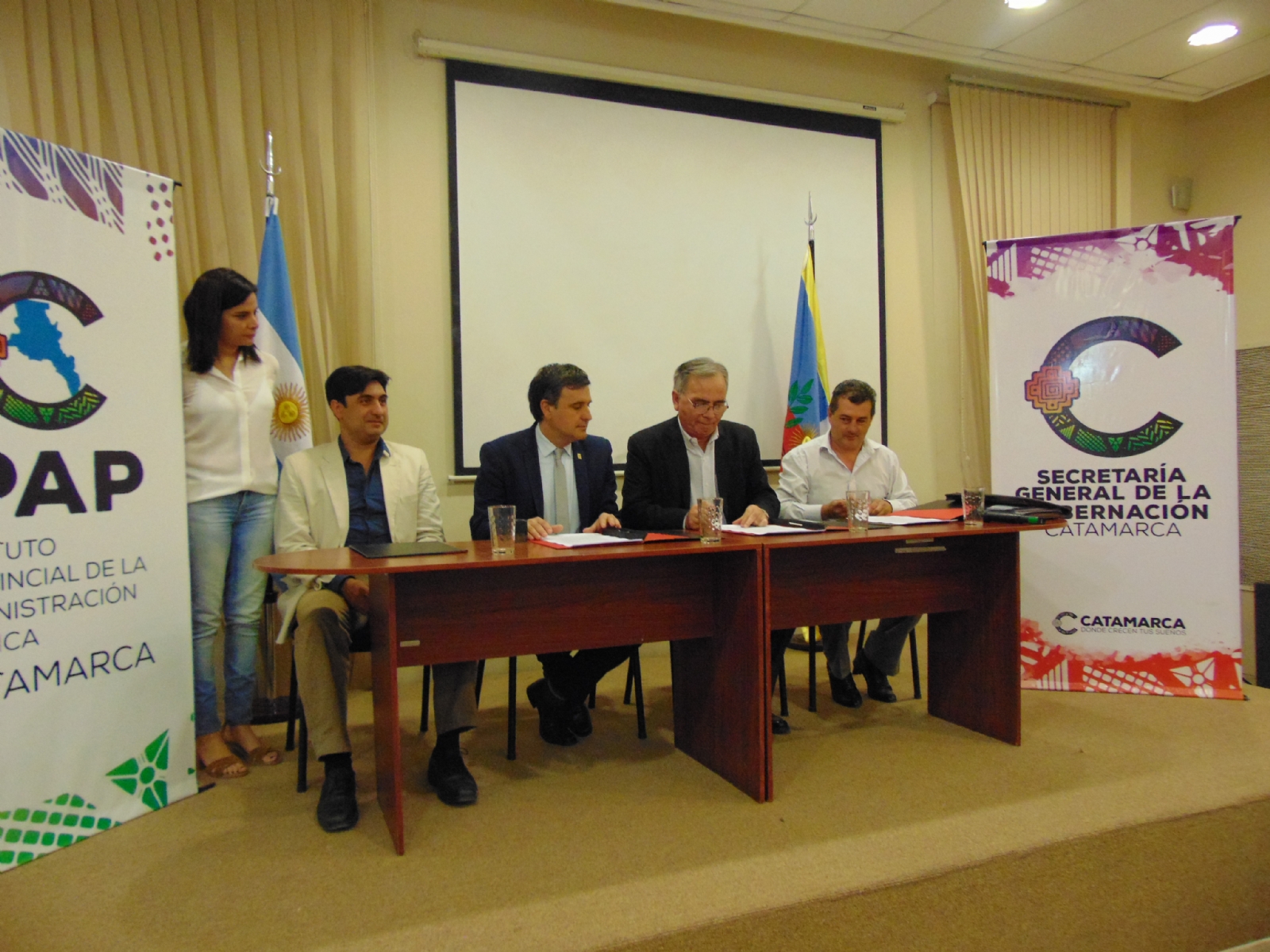 La firma del convenio se concretó en el auditorio del Instituto Provincial de la Administración Pública (IPAP) y estuvo a cargo del secretario general de la Gobernación, Edgardo Macedo y el subsecretario de Recursos Humanos, Maximiliano Pantalena y, en representación de la Cámara de Diputados firmaron el diputado Armando López Rodríguez a cargo de la Presidencia, y el secretario parlamentario, Gabriel Peralta.