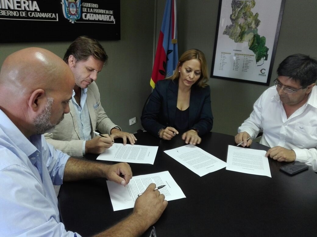 El convenio fue firmado por el presidente de la empresa, Tomás de Pablos; la intendente fiambalense, Roxana Paulón; el secretario de Minería, Rodolfo Micone y el ministro de Producción, Daniel Zelarayán. Todos coincidieron en que se trata de “una buena iniciativa” y se comprometieron “a trabajar activamente para lograr obtener la radicación de este polo industrial”.