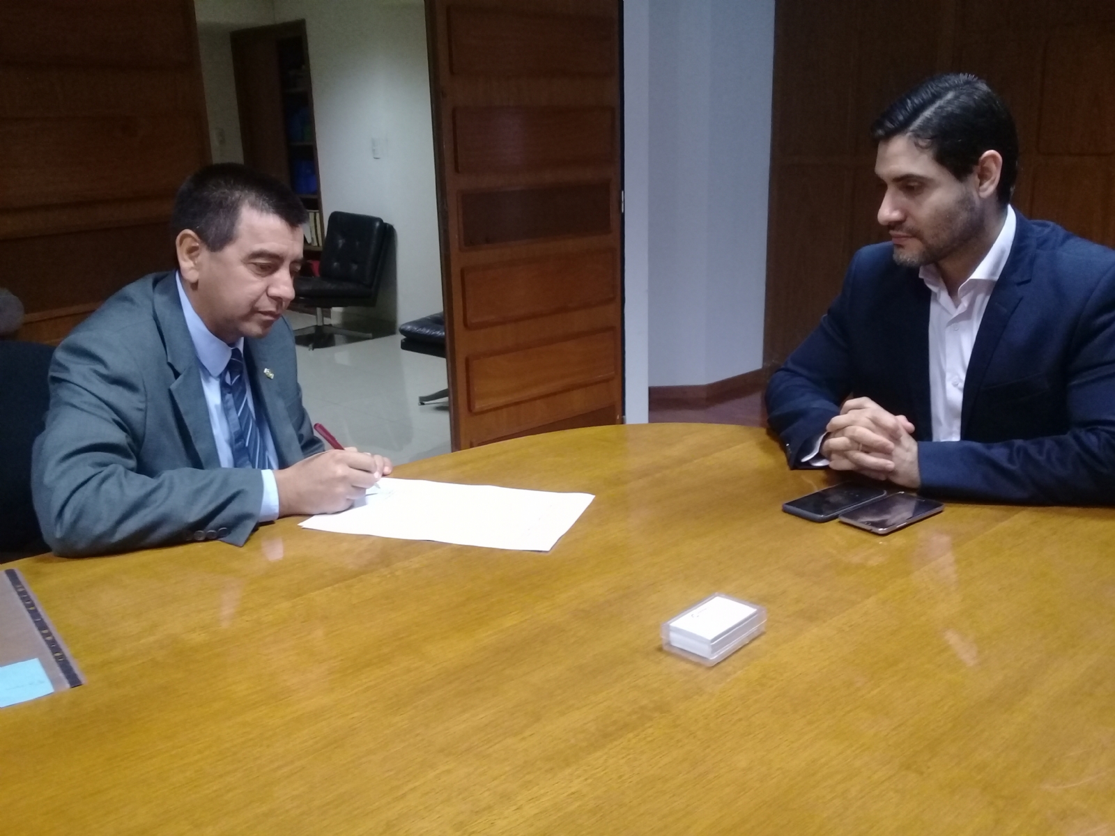 Los intendentes de Pomán, Francisco Gordillo, y de Aconquija, Cristian Gutiérrez, se reunieron esta mañana con el ministro de Hacienda y Finanzas, Sebastián Veliz, y firmaron la adhesión de sus comunas al Consenso Fiscal Provincia Municipios.