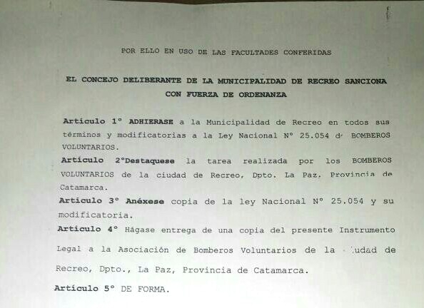 Por iniciativa de la Concejal Melisa Herrera (FPV), el cuerpo aprobó la Adhesión del Municipio de Recreo a la Ley Nacional N° 25.054 de Bomberos Voluntarios.