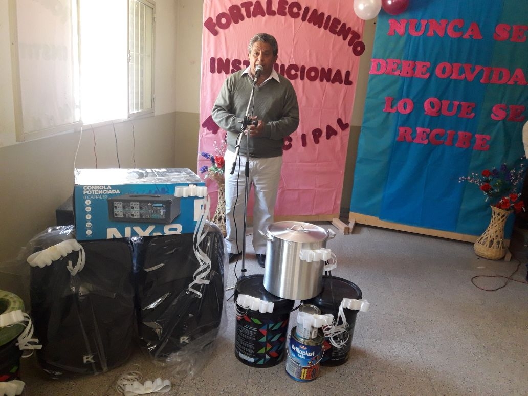 Fue el intendente Jose Antonio Gomez quien hizo la entrega a la Directora de las escuelas primaria Rural N° 111 Prof. Gladis Alicia Gonzalez y a la directora de Escuela Secundaria Rural N° 34 Prof. Marisol Lagoria.