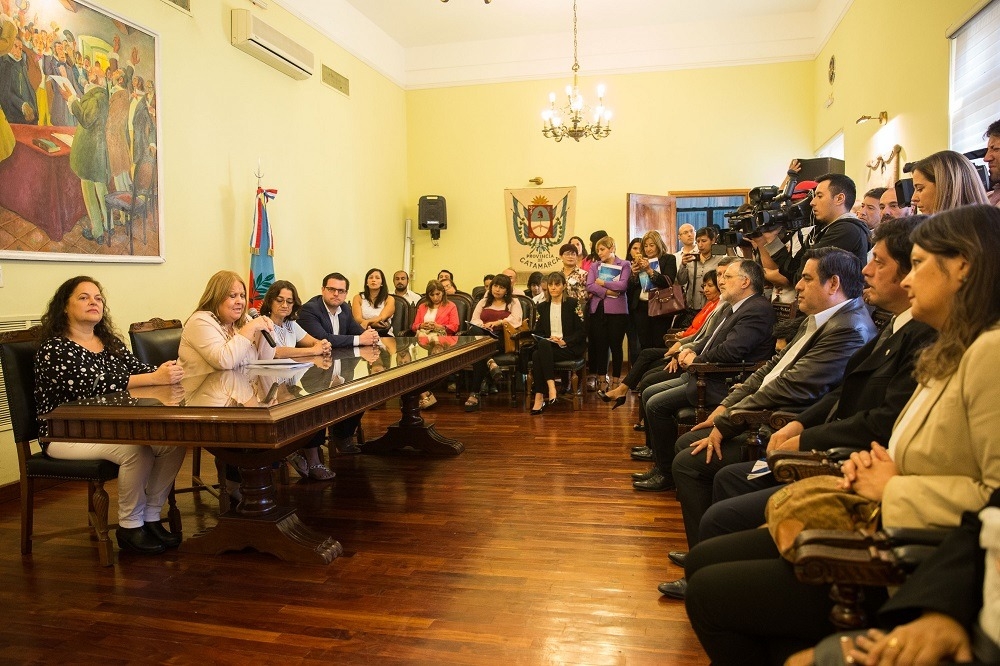 El acto se realizó en el salón de acuerdos de Casa de Gobierno y contó con la participación del ministro de Desarrollo Social, Eduardo Menecier, y de la subsecretaria de Familia Marina Losso, entre otros funcionarios.